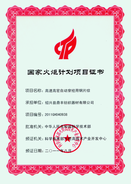 浙江鼎豐紡織器材有限公司始建于1986年,是一家專業(yè)生產(chǎn)各類(lèi)無(wú)梭織機(jī)用鋼筘:噴氣筘、噴水筘、劍桿筘、其他類(lèi)型鋼筘;鋁合金綜框、鋼片綜、停經(jīng)片、經(jīng)軸、織軸、卷布輥等產(chǎn)品及配件的民營(yíng)企業(yè)。